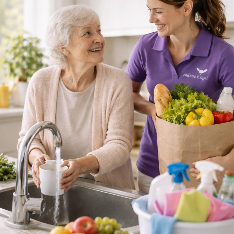 Wir helfen bei Einkäufen, Reinigung, Wäsche und anderen Aufgaben im Haushalt, damit Ihr Zuhause ordentlich und angenehm bleibt.